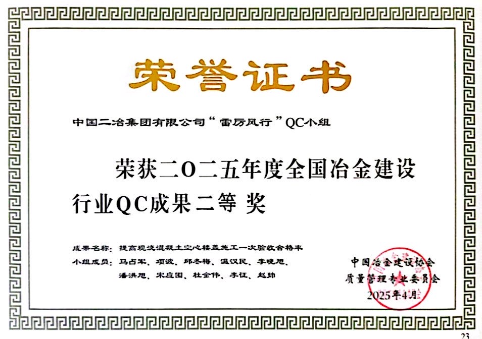 在2025年度全國(guó)冶金建設(shè)行業(yè)質(zhì)量管理(QC)成果評(píng)選活動(dòng)中,市政分公司《提高現(xiàn)澆混凝土空心樓蓋施工一次合格率》和《提高鋼管混凝土一次澆筑合格率》兩項(xiàng)成果,榮獲二等獎(jiǎng)。這一榮譽(yù)不僅彰顯了分公司在技術(shù)創(chuàng)新與質(zhì)量管理方面的卓越實(shí)力,更為冶金行業(yè)綠色智能建造提供了可借鑒的實(shí)踐經(jīng)驗(yàn)。