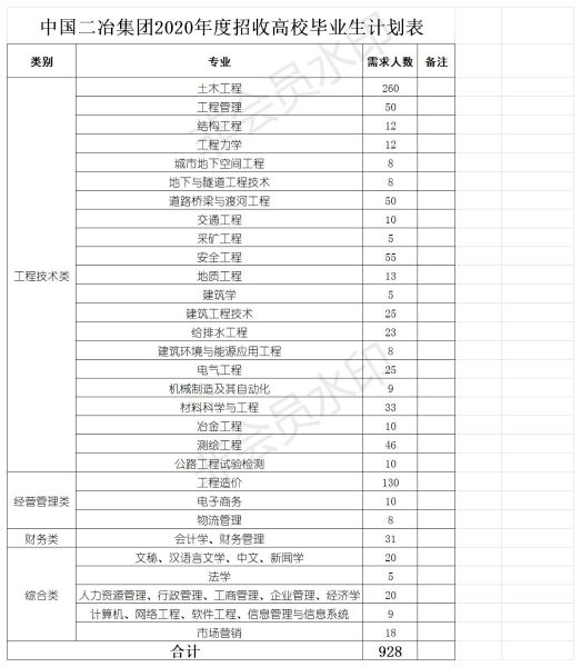 中國二冶集團有限公司 2020 年高校畢業生招收簡章