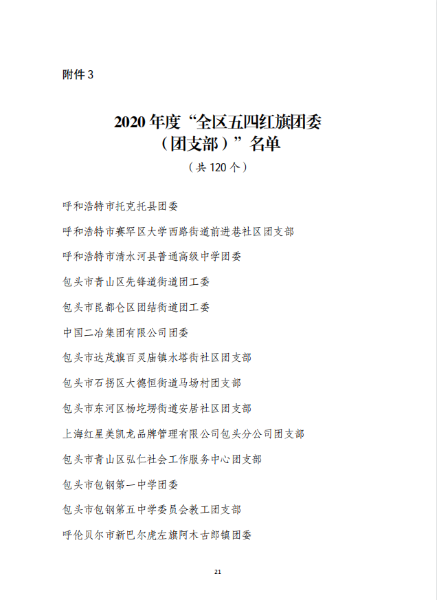 中國二冶團委榮獲2020年度內蒙古自治區和中冶集團“五四紅旗團委”榮譽稱號
