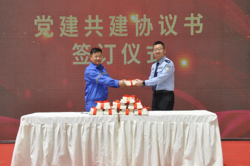 在辦實(shí)事、開新局環(huán)節(jié),公司新城佳園項(xiàng)目部黨支部與邯鄲市公安局峰峰礦區(qū)分局太安派出所簽訂黨建共建協(xié)議書,共同推進(jìn)雙方黨建工作向縱深發(fā)展。隨后,公司黨群工作部副部長(zhǎng)王志義為共建黨支部贈(zèng)送紅色書籍。之后,全體人員集體宣誓,表示將繼承優(yōu)良傳統(tǒng)、立足崗位建功,鑄就精品、追求卓越,團(tuán)結(jié)拼搏、開拓創(chuàng)新,樹一流形象、建一流工程,為峰峰礦區(qū)實(shí)現(xiàn)城市化建設(shè)貢獻(xiàn)力量。