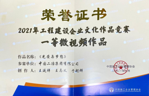 會上公布了2021年工程建設企業文化作品競賽活動評選結果及2021年度優秀通訊員名單。中國二冶官網榮獲工程建設企業文化作品競賽優秀網站;公司黨群工作部王延祥、王志義、于超群主創的《光榮與夢想》榮獲微視頻作品類一等獎;路橋分公司王琛主創的《我的入黨故事——郝艷波》榮獲微視頻作品類三等獎;公司黨群工作部張婷榮獲2021年度優秀通訊員。