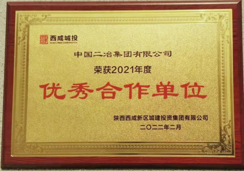 中國二冶獲評西咸新區城建投資集團有限公司2021年度“優秀合作單位”榮譽稱號
