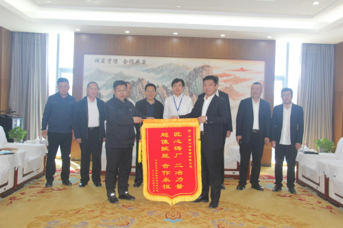 會上,楊樹仁一行代表默夙集團向中國二冶贈送錦旗,對中國二冶在默銳一期項目建設中,突破工期緊任務重等不利因素,高標準嚴要求,精益求精匠心鑄企,披荊斬棘奉獻二冶力量,優(yōu)質(zhì)快速完成工程建設任務,實現(xiàn)雙方互惠互利,給予高度肯定和表揚。會前,雙方共同參觀了中國二冶榮譽展廳。