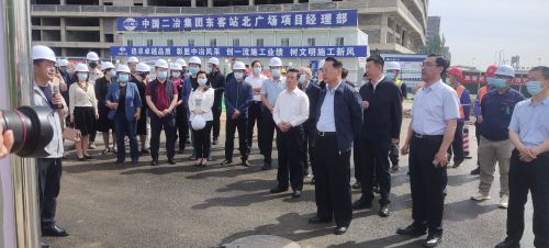 5月27日,呼和浩特市政協主席李炯一行到中國二冶呼和浩特市東客站北廣場及地下空間綜合體工程項目調研。