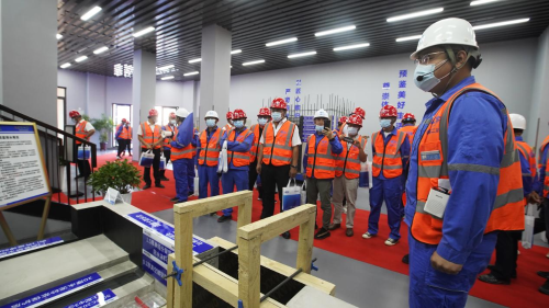 “同心慶七一,喜迎二十大。”6月30日上午,在充分做好疫情防控的前提下,中國二冶以“精管理、保安全、穩(wěn)生產(chǎn)、樹品牌,建功新時代,喜迎二十大”為主題的項目觀摩交流會暨企業(yè)開放日活動在包頭中冶德賢公館項目舉行。公司副總經(jīng)理劉寶世、包頭市住房和城鄉(xiāng)建設(shè)綜合行政執(zhí)法支隊支隊長吳俊杰等參加觀摩。