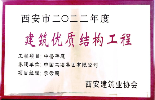 “建筑優質結構工程”獎是西安市建筑行業工程質量管理方面的權威獎項。該獎項的獲得,是西安市建筑業協會對中國二冶建筑施工生產實力和質量管控專業技術能力的充分肯定,更是對中國二冶在西安市城市建設過程中的付出和為當地經濟發展所作貢獻的認可。