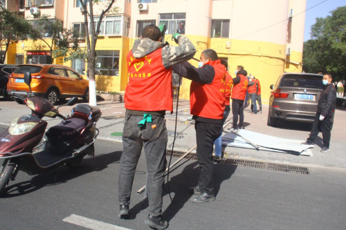 10月8日適逢二十四節氣中的“寒露”,包頭地區氣溫驟降十幾度,分公司機關、項目部黨員迎著刺骨的寒風,冒著風險,發揮“我不沖誰沖”的帶頭示范作用,迅速組織協調,搬運防疫封閉用的方鋼、彩鋼板等物資,有的黨員親自動手與職工們團結配合搭設架子,安裝彩鋼板,加快小區封堵進度。在黨員們的帶動下,職工們斗志昂揚,干勁十足,現場呈現一派繁忙景象。上午9:00時,友誼小區北門封閉完成,下午13:00時少先二十三社區封堵完畢,緊接著少先二十二社區、友誼十八、友誼十三……等社區紛紛傳來好消息,當天晚上20:25,隨著最后一個社區門全面封堵,標志著中國二冶快速完成9個社區、13個街坊和小區、451棟住宅樓的進出口封閉封堵任務,一道道宛如長龍的藍色城墻屹立在少先路街道街區四周,二冶人打贏了一場又一場漂亮的攻堅戰。