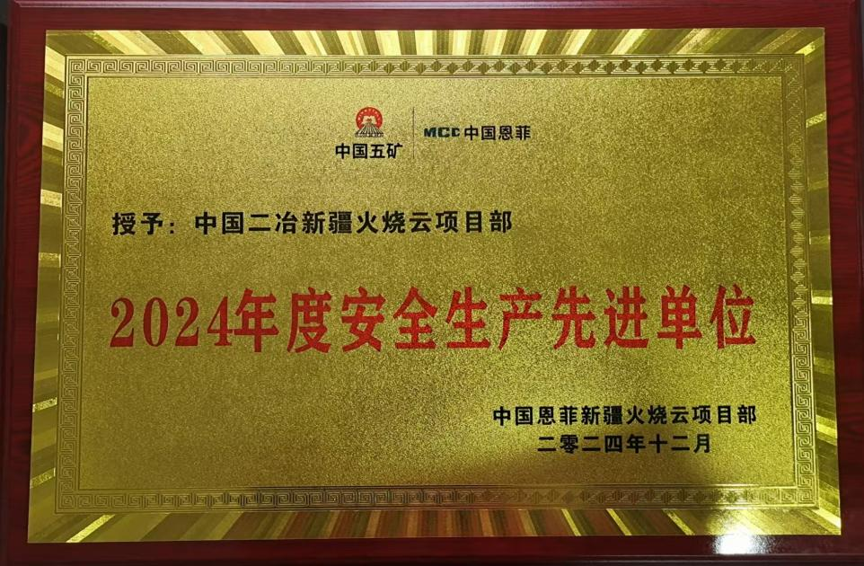 近日,中國二冶新疆火燒云鉛鋅礦60萬噸/年鉛鋅冶煉工程項目憑借其卓越的安全管理體系和出色的執行成效,在眾多項目中脫穎而出,榮獲總包單位中國恩菲頒發的“安全生產先進單位”稱號。