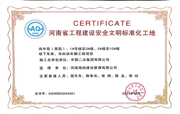 近日,由中國二冶承建的尚中苑(西苑)工程項目榮獲河南省工程建設協(xié)會“河南省工程建設安全文明標準化工地”榮譽稱號。
