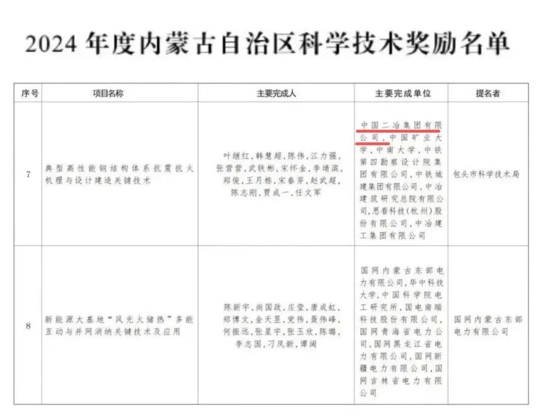 中國二冶榮獲內(nèi)蒙古自治區(qū)科技進(jìn)步一等獎
