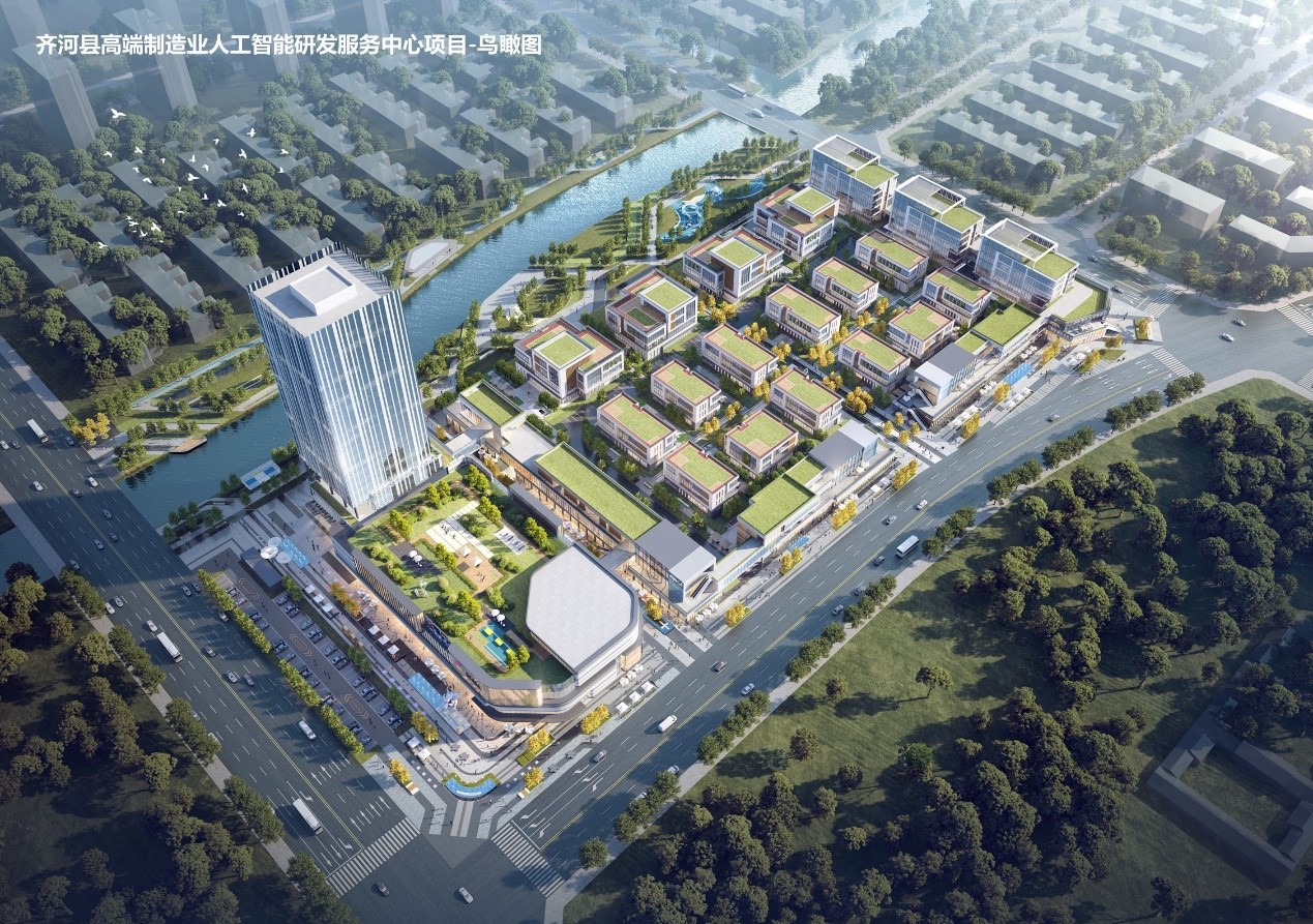 項目位于德州市齊河縣經濟開發區308國道以北,占地面積約88畝,總建筑面積12萬平方米,建設人工智能技術研究發展服務中心以及附屬配套設施,以提供高性能算力、智算算力為核心的新型算力信息基礎設施、公共服務平臺研發服務。