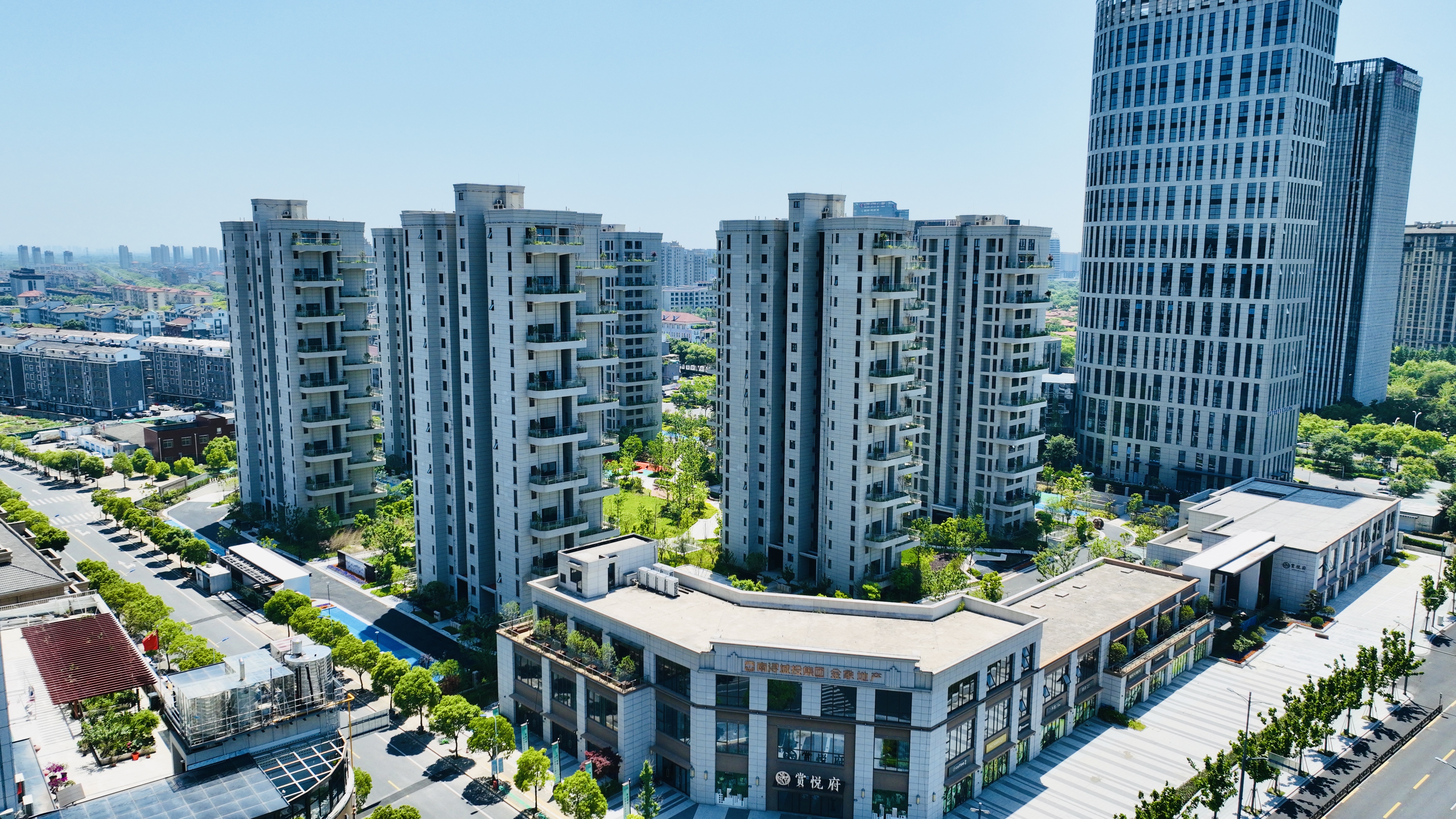 賞悅府住宅小區項目總占地面積6萬平方米,包含7幢18層住宅、1幢1~3層商業樓、1幢1~2層配套用房、1間垃圾房、1間變電所及1層地下室。