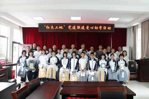 天長北路安置項目部聯(lián)合臺州黃巖中環(huán)房地產(chǎn)開發(fā)有限公司、黃巖區(qū)建筑工程質(zhì)量安全事務(wù)中心黨支部和黃巖區(qū)頭陀鎮(zhèn)中學(xué)黨支部,以黨建聯(lián)建為載體,以捐資助學(xué)、唱紅歌、講紅色故事為活動抓手,為頭陀鎮(zhèn)中學(xué)生活困難的學(xué)生送上書包、書本等物品,讓紅色文化在孩子們的心里落地生根,將紅色基因代代相傳。