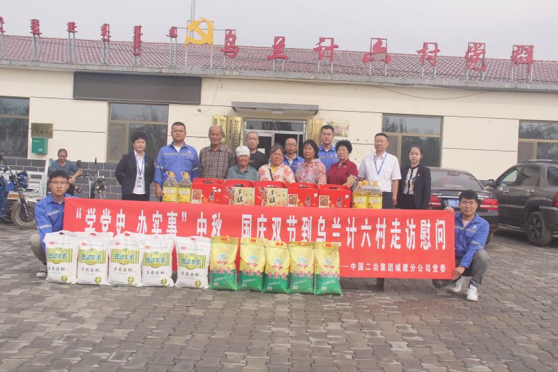 九月秋風送爽,九月丹桂飄香,帶著“永遠跟黨走”的信念和初心。9月13日,中國二冶城建分公司開展“學黨史 辦實事”中秋.國慶雙節到烏蘭計六村走訪慰問活動,共同與當地困難群眾歡度中秋,歡慶祖國92歲生日。